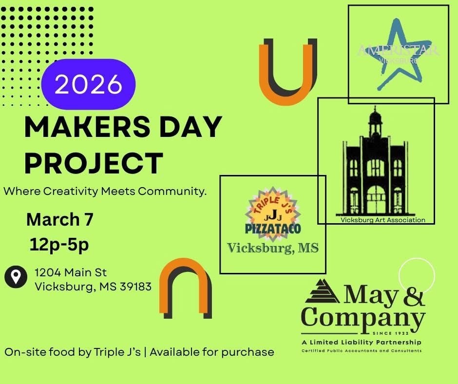 This event will be from 12:00 pm until 5:00 pm at the Constitution Firehouse Gallery, 1204 Main Street. Children will enjoy hands-on art activities designed to spark creativity and imagination. Attendees will experience live demonstrations from a blacksmith, woodworker, and metalworker. The Makers Day Project is presented in partnership with the Vicksburg Art Association. For more information call 601-636-1012.
