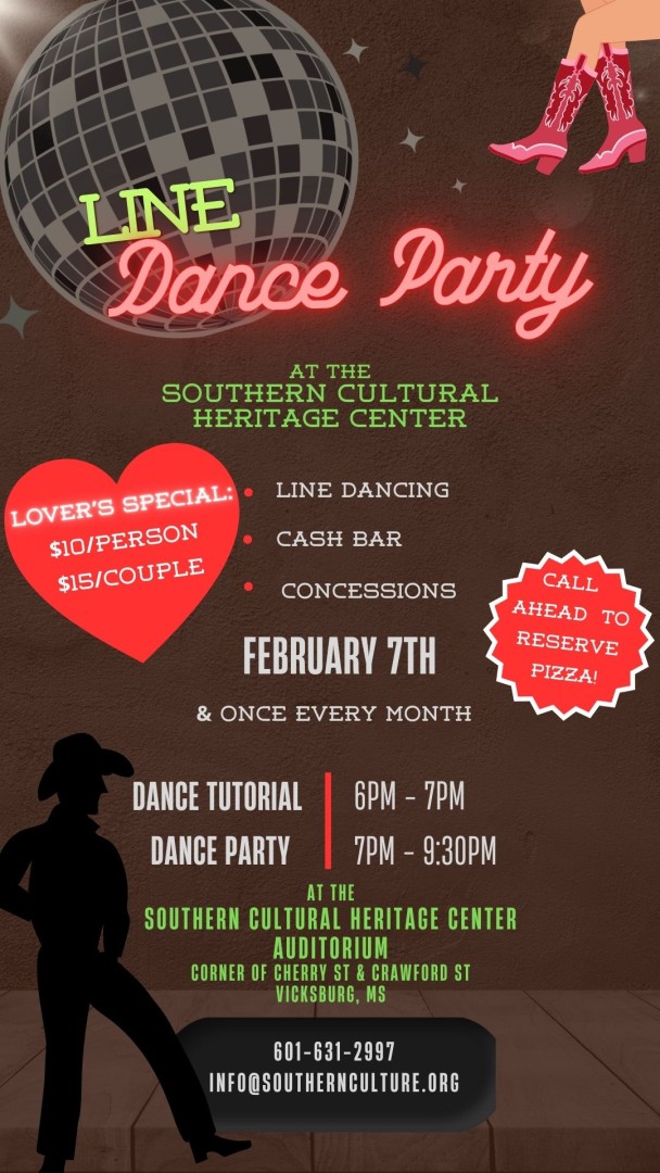 This event will begin at 6:00 pm at Southern Cultural Heritage Foundation, 1302 Adams Street. There will be a dance tutorial from 6:00 pm until 7:00 pm and a dance party from 7:00 pm until 9:00 pm. The cost is $10 per person or $15 per couple. There will be a cash bar and concessions available. For more information, call 601-631-2997.