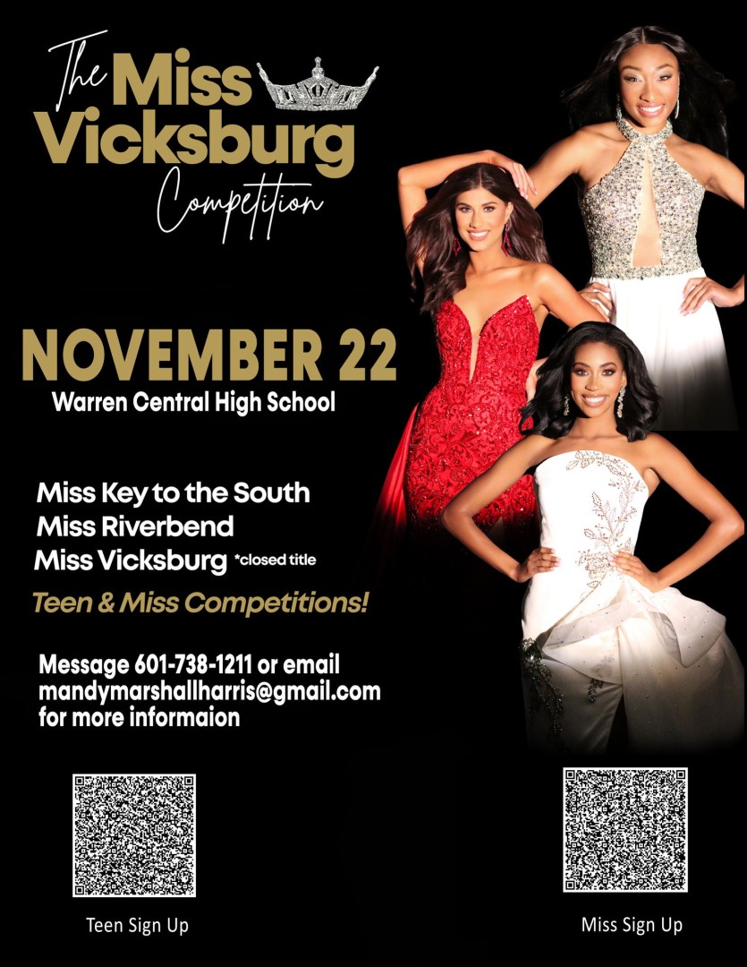 The competition will take place at Warren Central High School, 1000 Hwy 27. The competition will be for Miss Key to the South, Miss Riverbend and Miss Vicksburg. For more information call 601-738-1211 or email mandymarshallharris@gmail.com.