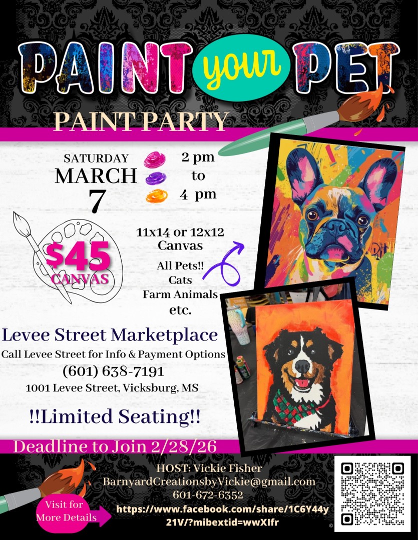 This event will be from 2:00 pm until 4:00 pm at Levee Street Marketplace, 1001 Levee Street. The cost is $45 per person. There is limited seating and you must sign up by February 20th. Call 601-638-7191 to sign up or for more information.